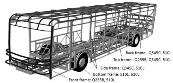 新能源客车骨架主要采用≤610MPa级低合金、普碳钢产品,其重量约占客车总质量的1/3左右,而采用高强钢制作方矩形管是客车车身的发展趋势。 近年来,某客车厂采用超高强度钢制造的我国首辆轻量化公交车,此车型比国内同长度、同配置车身骨架减重 13%,载客能力提高 20%,且节省油耗 5%以上.