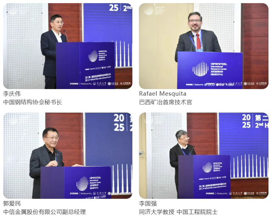 第二届高性能钢建筑结构国际论坛( 2 nd  HiPerSTEEL International Forum) 由同济大学、巴西矿冶公司、中信金属股份有限公司和义诚建筑科技主办,高性能钢结构国际研究中心(HiPerSTEEL International Research Center)承办,同时得到来自华建集团华东建筑设计研究院有限公司、中国建筑科学研究院有限公司、同济大学建筑设计研究院(集团)有限公司、北京市建筑设计研究院股份有限公司等合作伙伴的协办支持与帮助。   会议开幕式由同济大学王彦博教授与巴西矿冶建筑市场开发经理Daniel Silverio主持,中国钢结构协会秘书长李庆伟、巴西矿冶首席技术官Rafael Mesquita、中信金属股份有限公司总工郭爱民和中国工程院院士、同济大学李国强教授分别进行开幕致辞。
