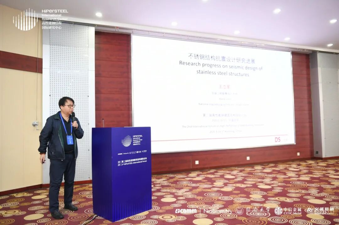 华诚博远工程技术集团有限公司的王立军大师就“不锈钢结构抗震设计研究进展”作了报告,报告围绕不锈钢在工业建筑抗震标准以及不锈钢结构技术规程内容进行分享,重点对不锈钢抗震性能化设计的新增内容作了阐述。