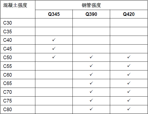 表1:钢管混凝土中钢材与混凝土强度等级适配