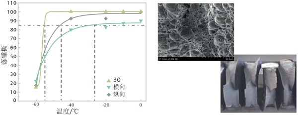 钢材韧性由晶粒尺寸决定。在根据韧脆转变温度(DBTT)对韧性进行评估时,发现钢材晶粒尺寸越小,韧脆转变温度越低。但是,仅依靠较小平均晶粒尺寸无法保证高韧性水平。由于当材料中晶粒尺寸存在差异时,韧性水平将受到较大尺寸晶粒的影响,因此为了实现高韧性水平,还须确保细晶粒分布均匀。
